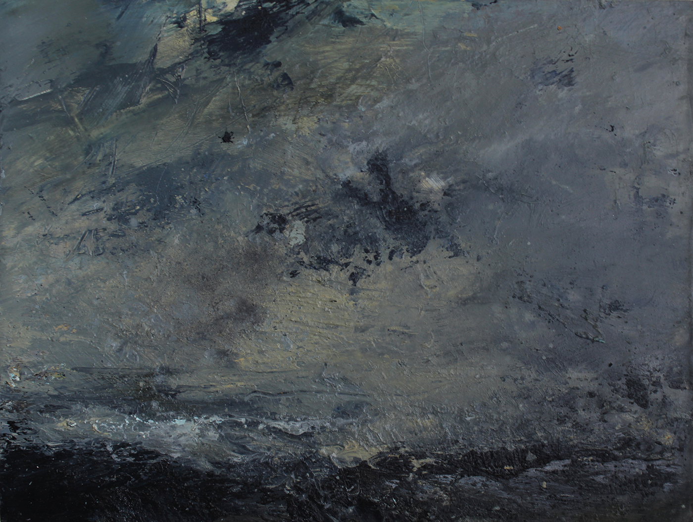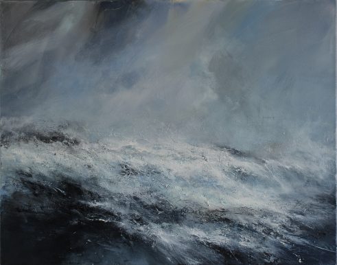 My paintings emerge from responses to sound and silence within the landscape; they explore movement and the rhythms of sea and wind, swelling and breaking waves, the merging of spray with air, advancing rain and mist, glancing sunlight – elements that seem to touch on something intangible.