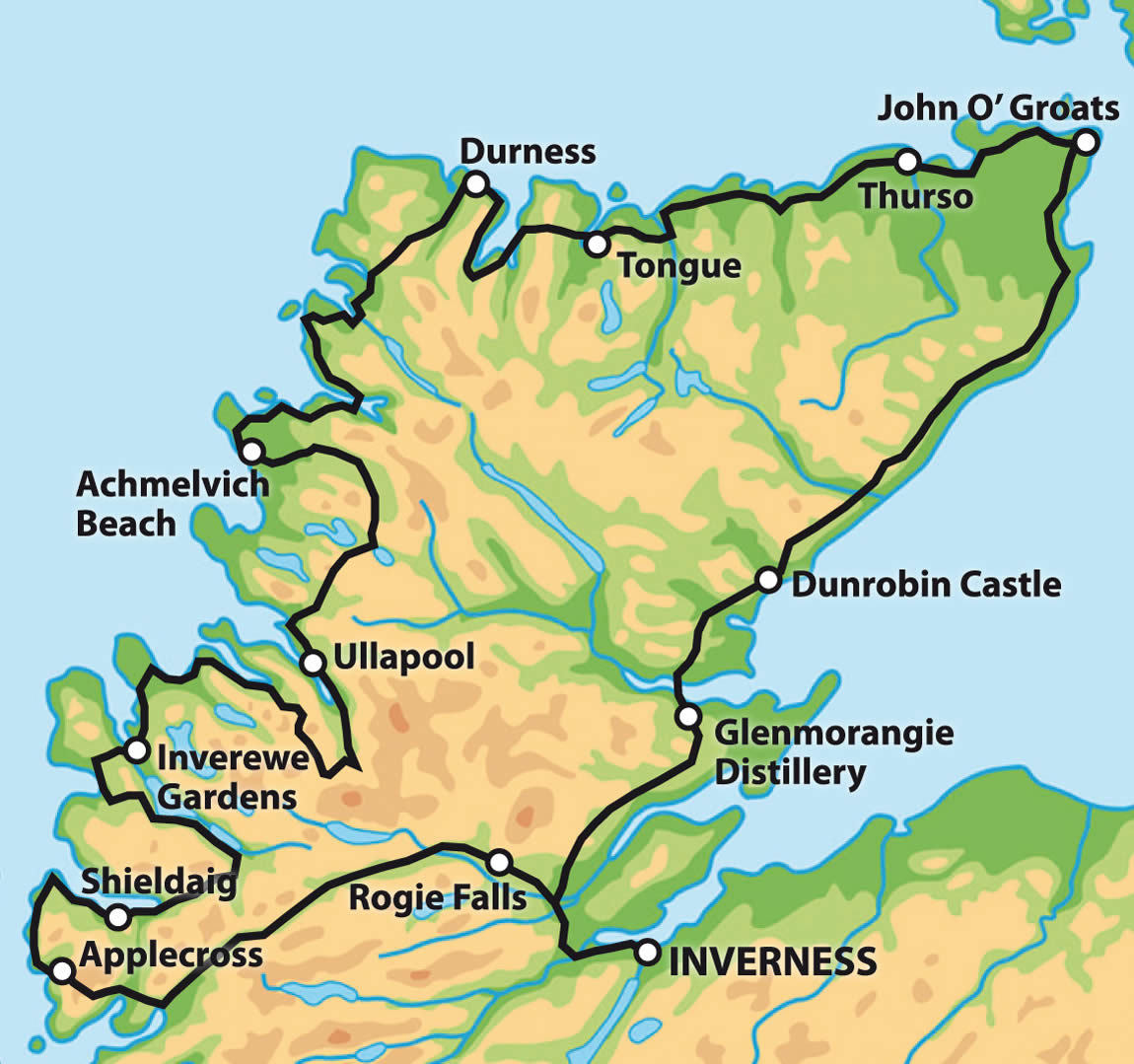 The route starts in Inverness, weaves towards the west coast to Applecross and then northwards, up and down towards Torridon, Ullapool and Durness. Heading east along the north coast we will venture to some of the most northerly coastal points in Scotland, passing by Caithness before heading south through Dingwall and finally back to Inverness. We are expecting horizontal rain, high winds, punctures, tears and lots of bananas over the course of the route! This would be difficult for anyone, let alone someone with MND.